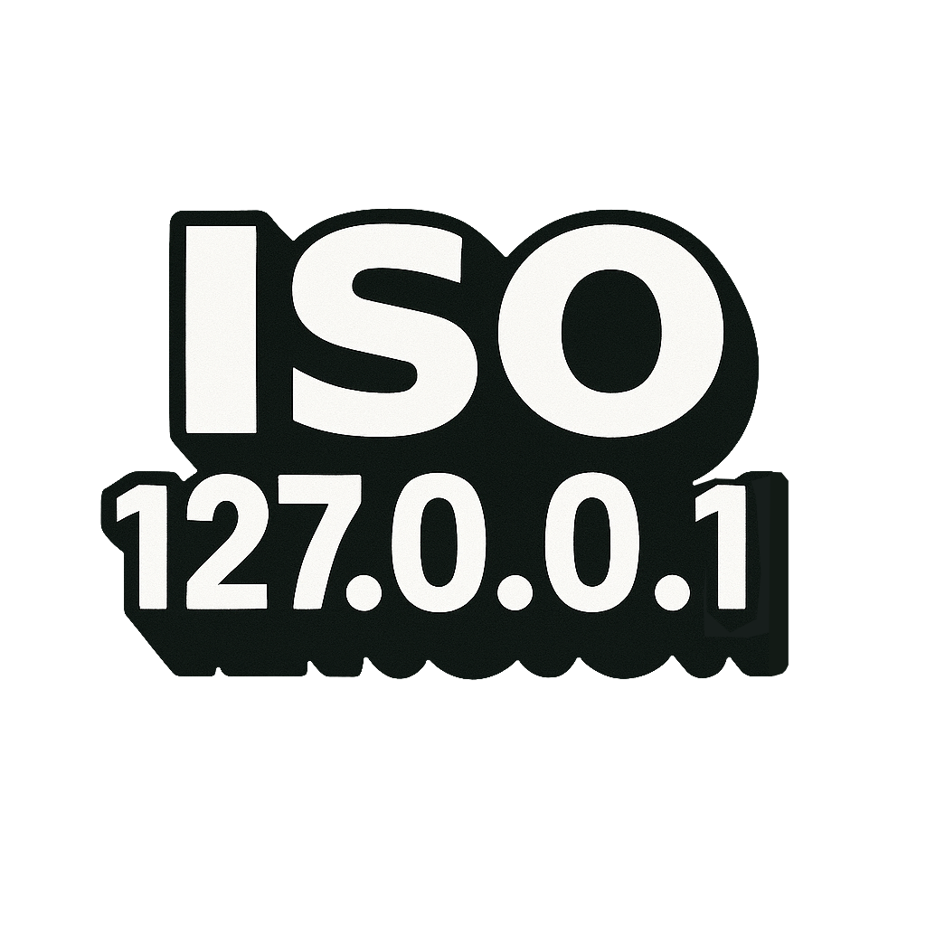 A spoof of the ISO logo, mashed with localhost (127.0.0.1). This sticker proudly represents devs, hackers, and introverts who run best in self-hosted solitude