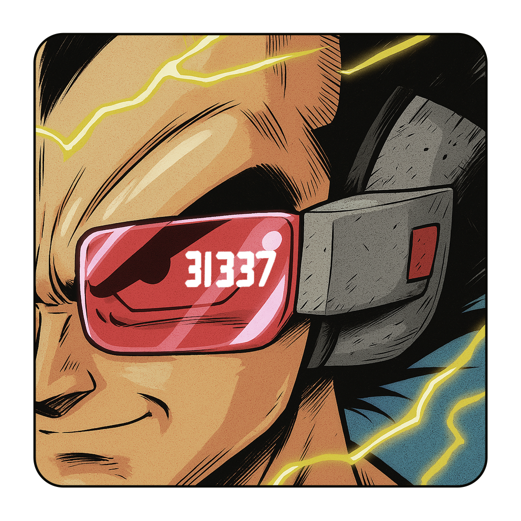 Inspired by DBZ anime and elite hacker culture, this scouter styled sticker reads “31337”