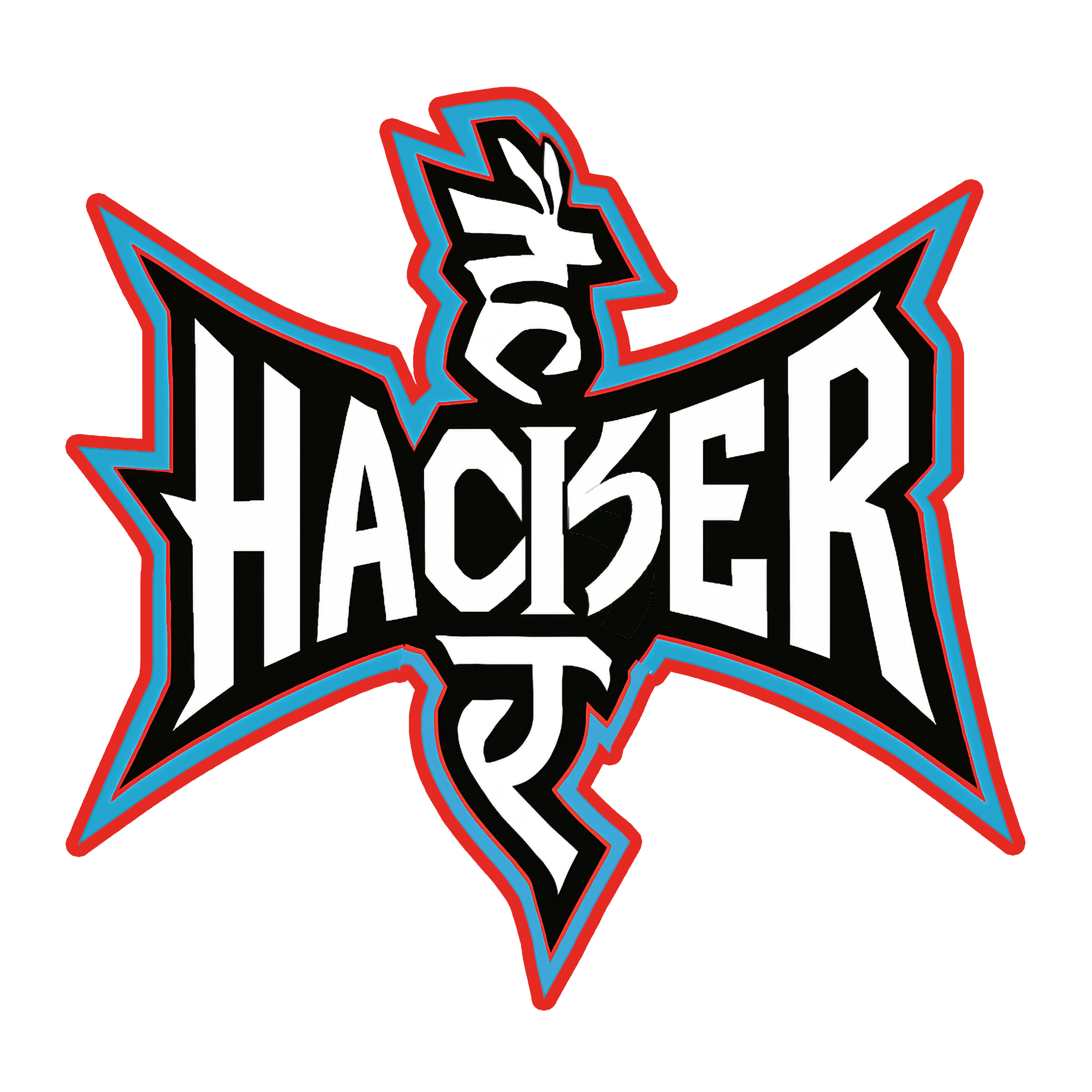 Styled like a heavy metal band logo, this design fuses English and Devanagari (Hindi) scripts to spell “HACKER”