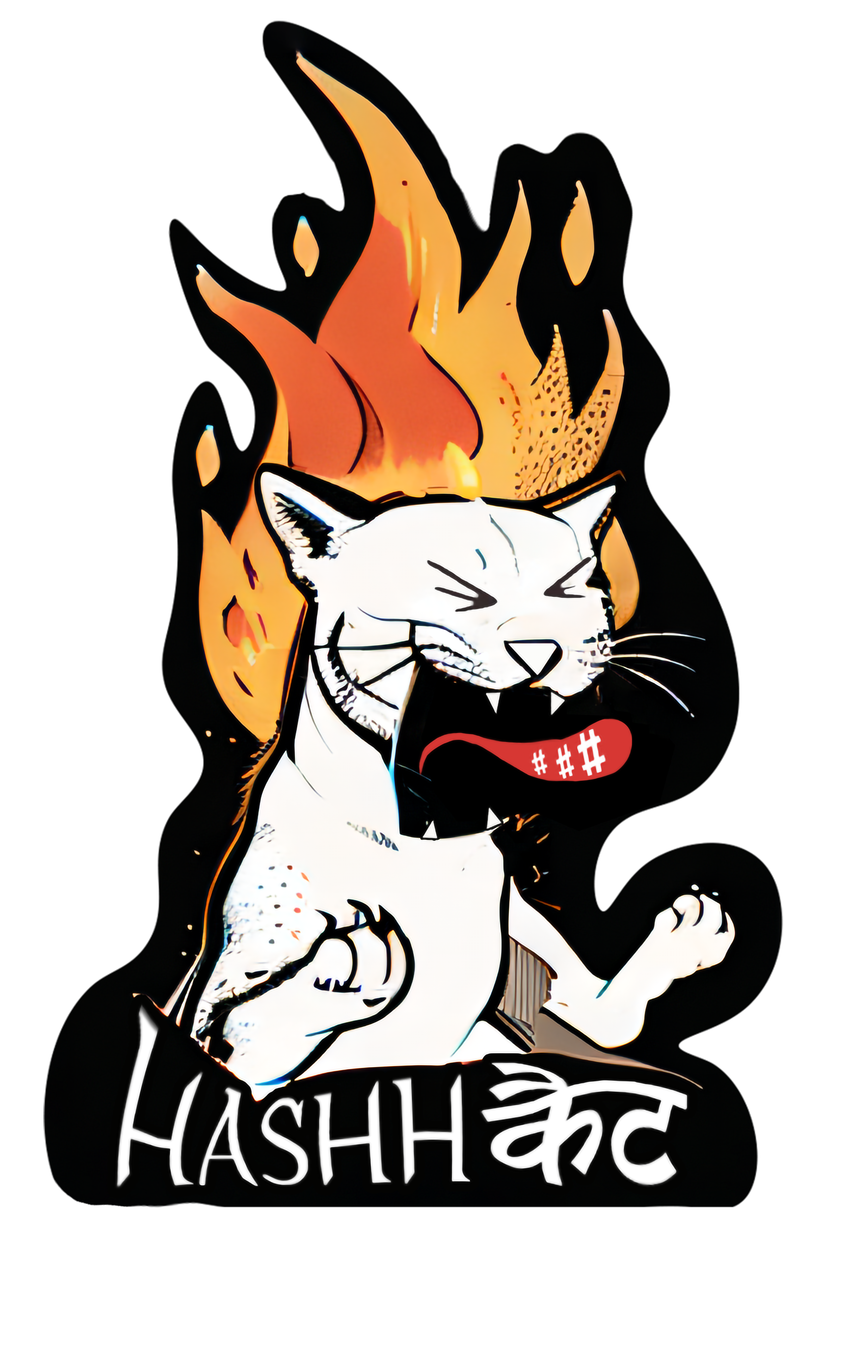 A fiery feline screaming hashes: this sticker combines “HASHH” and “कैट” (Hindi for cat), capturing the chaos of cracked passwords, brute force, and rage quit sessions in the digital wild